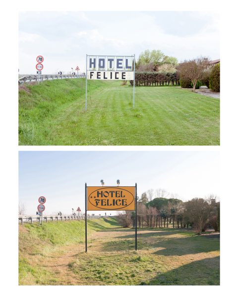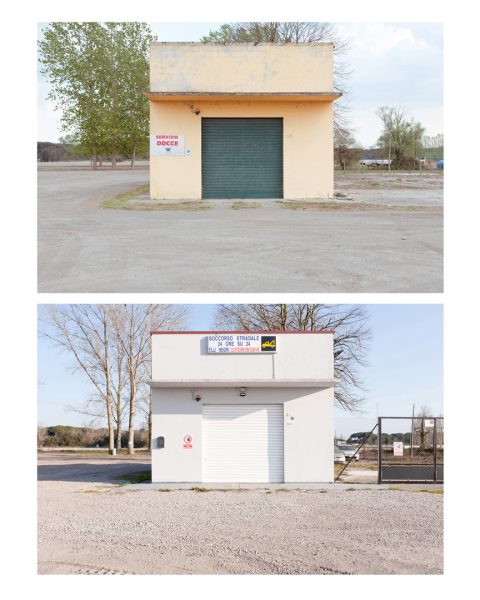 Tutto scorre; l’asfalto, i chilometri, i luoghi, il tempo… “Tutto si muove e nulla sta fermo”. Nel 2012 ho ritratto vari luoghi lungo la strada Romea, partendo dalla provincia di Ravenna arrivando alle porte di Venezia e nel 2022 sono tornato negli stessi per vedere cosa fosse cambiato. In effetti, l’intento di questo progetto, è quello di sottolineare i mutamenti avvenuti in questi 10 anni, percorrendo un viaggio sia fisico sia temporale. Il paesaggio è in continua mutazione, è dinamico, irrequieto, sia per mano dell’uomo sia per mano della natura. In queste immagini si evidenziano cambiamenti dovuti, nella maggior parte dei casi, a fattori sociali ed economici che si sono avvicendati in questi ultimi anni. In particolare le variazioni che riguardano le attività commerciali lungo questa storica arteria stradale, che connette le località dell’alto Adriatico, per poi proseguire verso gli stati dell’est, sono un po’ come una cartina di tornasole, che mostra quel che succede più in generale. Per mettere meglio in risalto questo dinamismo, ho ripreso gli stessi soggetti nella stessa posizione, cercando di ritrarli nelle stesse condizioni di un tempo. Infine, il montaggio in verticale delle due immagini (sopra la passata e sotto quella recente) porta lo spettatore a confrontare le fotografie in modo semplice ed immediato, un po’ come il passatempo “Trova le differenze” all’interno dei settimanali di enigmistica.